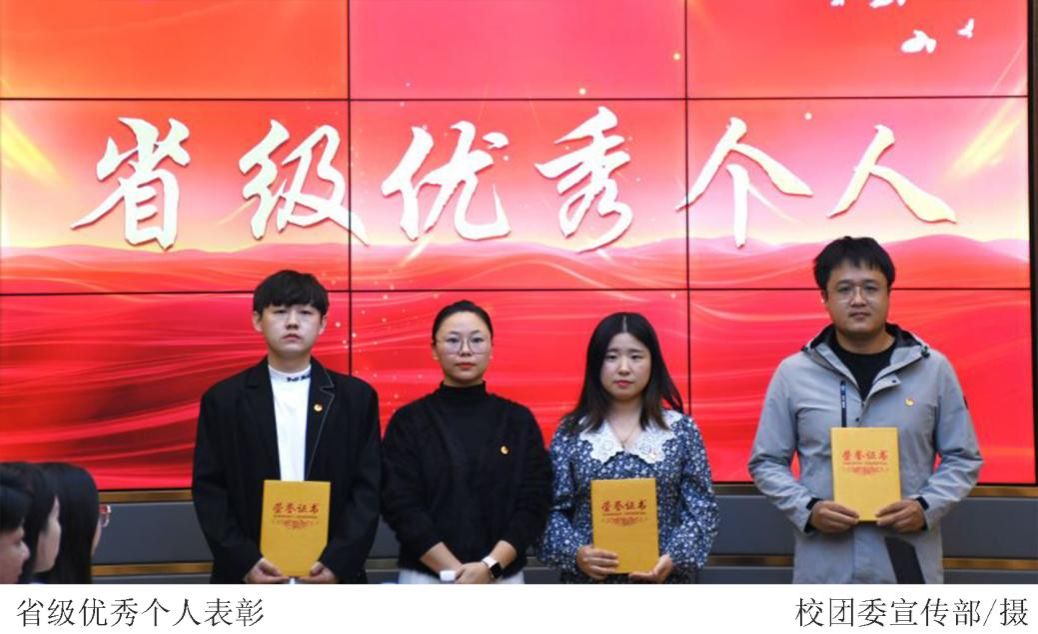 省级优秀个人外国语学院党总支副书记吕媛和校级优秀个人卢家儿同学作代表发言,她们表示,通过“三下乡”活动,深刻体会到青年力量对建设乡村,服务基层的意义重大,也更进一步明确了青年人的责任与使命。并向大家分享了自己实践队下乡经验,提出教育不只局限在课堂上,更需要走出校园、走进乡村,用自身行动去助力乡村的发展与振兴,鼓励在场的老师与同学们积极融入基层,了解基层,共同书写乡村振兴的新华章!