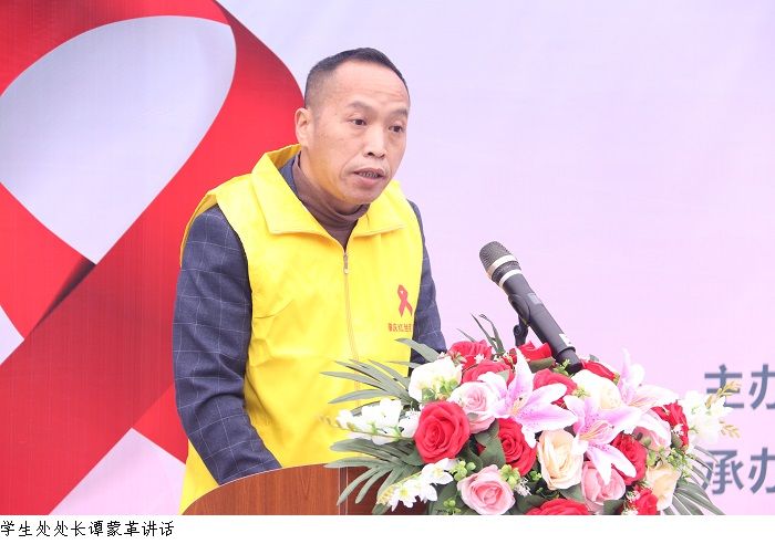 学生处处长谭蒙革为本次活动致开幕词,对各单位领导嘉宾莅临bat365官网参加世界艾滋病日宣传主题活动表示热烈的欢迎,也对到场参加本次活动的师生表示衷心的感谢。其次,他提出希望通过此次活动,能够引导广大师生珍爱生命、珍惜健康,树立正确的健康观念和防病意识,共同为我国实现终结艾滋病流行目标、建设健康中国做出更大贡献!