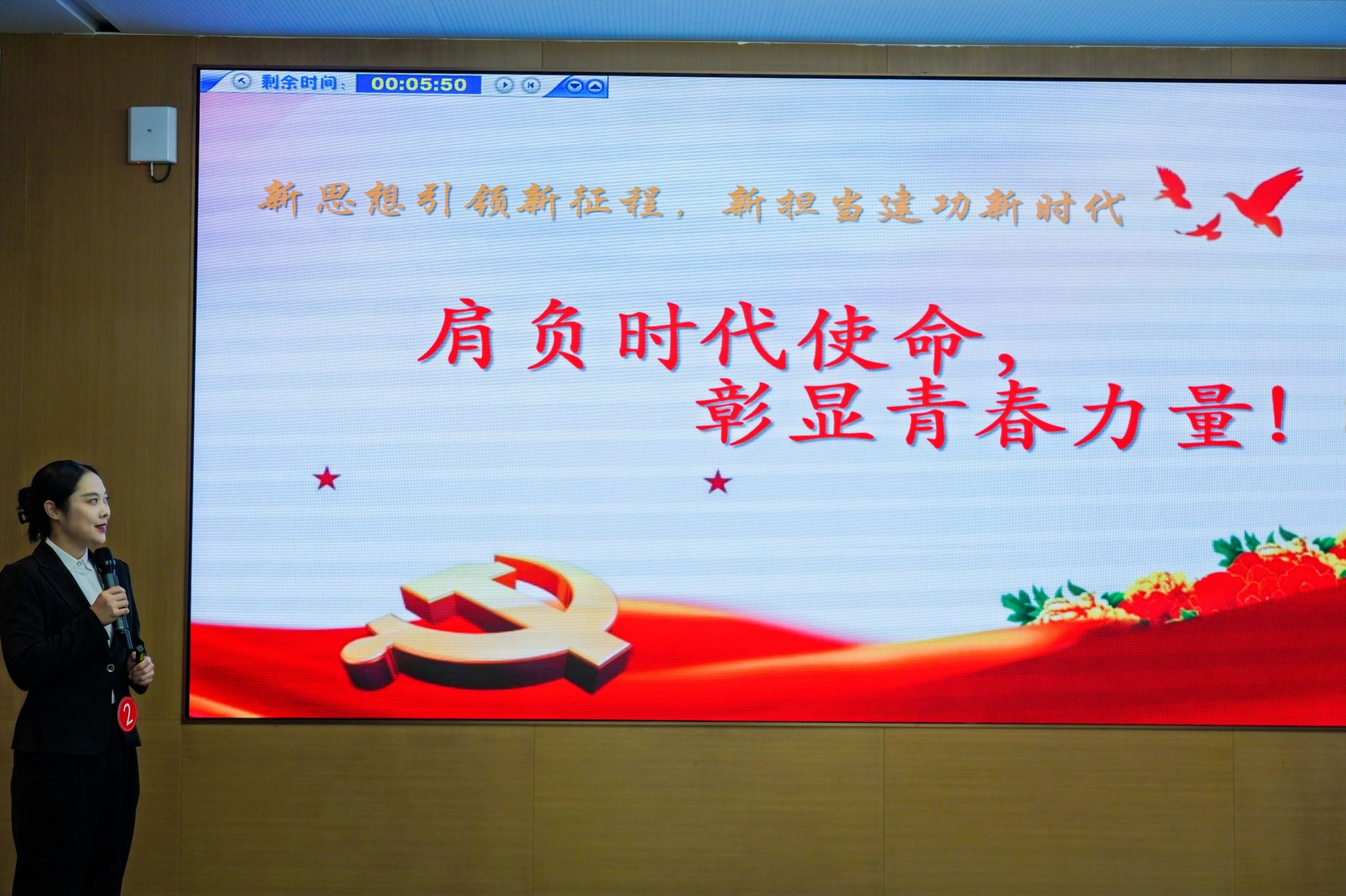 比赛现场,高珊珊老师以青春为切入点,阐述了当今青年一代用自己的方式展现其担当与使命。她结合党史故事、典型老党员案例,从“燃灯校长”张桂梅的事迹引入,再到普通农民小佛和残疾人吕律师,阐述在老一辈党员的带领下,社会各行各业青年群体与时俱进的使命担当的精神内涵。不论是张校长将一生奉献给山区教育工作,“守好学生,守好岗位,守好学校”;还是朴实的农民群体团结奋进、自立自强,“守好小家,守好一方农田,守好村庄”;抑或是“中国首位“无手律师”吕心为,用十余年的坚持书写了折翅雄鹰、蓝天翱翔的壮丽篇章,他“守好自己,守好本心,守好社会”。这些内容都充分体现了在老一辈党员的带领下,当今青年群体用自己独有的方式展现青春力量。该党课的形式也将微党课的精神内涵落到实处:微言大义、以小见大。该党课主题能引导广大师生在新的伟大征程上,继承光荣传统、赓续红色血脉,续写新的时代篇章,创造新的时代辉煌。
