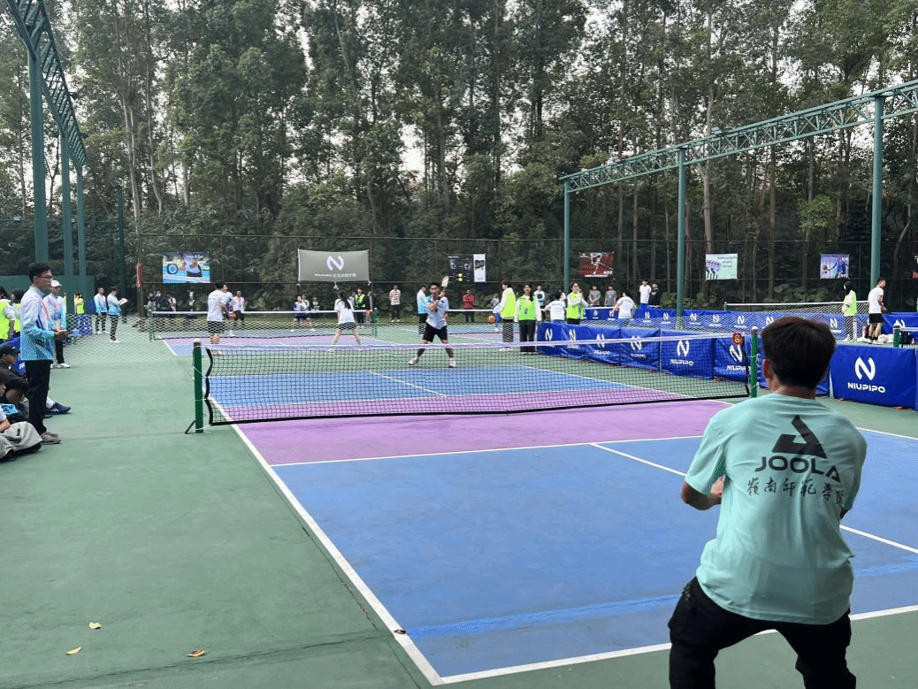 本网讯(体育学院)2023年12月8日至10日,由广东省教育厅指导,广东省学生体育艺术联合会主办,华南农业大学承办的2023年广东省大学生匹克球锦标赛在华南农业大学启林北球场盛大举行。来自全省多所高校的近40支队伍、共计400名运动员分别在甲组、乙组和丙组中进行男子和女子的单打、双打以及混合双打项目进行激烈角逐。