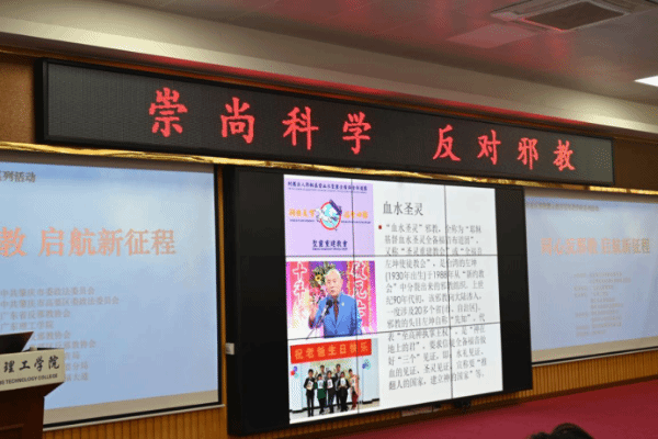 广东省反邪教协会专家从什么是邪教、邪教组织的种类、如何认清邪教、遇到邪教活动怎么办等方面向师生们进行了宣讲,通过视频播放邪教侵害案例,身边人身边事,揭露邪教害人的本质,引导大学生树立正确的人生观、价值观,自觉远离邪教,并以有奖问答的形式和同学们展开互动。在反邪教知识有奖问答环节,同学们热情高涨,积极响应,纷纷举手抢答,不仅正确回答了老师的问题,还谈了自身对邪教的认识感受,既学习了反邪知识,又提高了学生们对邪教的认识。