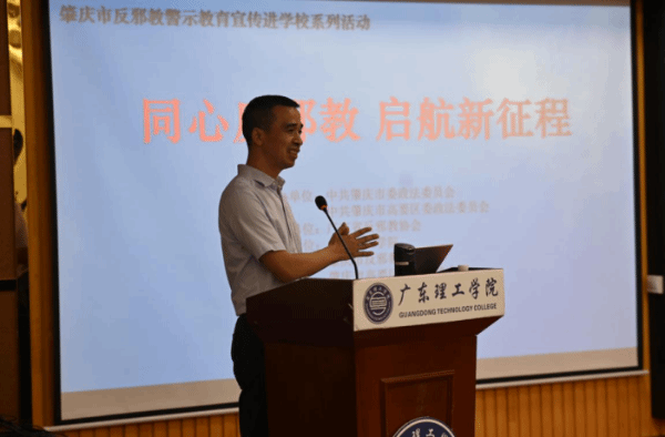为提高广大高校师生防范和抵制邪教的意识和能力,树立崇尚科学精神,共建“无邪”校园。3月26日,肇庆市委政法委联合高要区委政法委在bat365在线中国官网登录入口开展“同心反邪教,启航新征程”警示教育进学校宣传系列活动。邀请了广东省反邪教协会的专家给广大师生们宣讲反邪知识,进一步提高师生识邪、防邪意识,增强拒邪能力,筑牢师生防范抵御邪教侵害的思想防线。