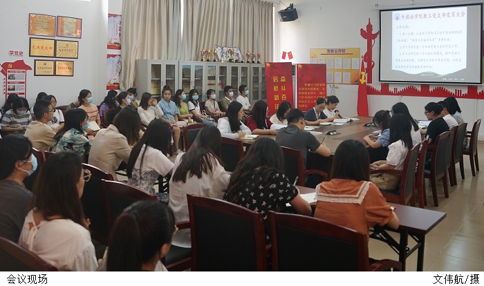 本网讯(外国语学院新闻中心)9月13日下午,外国语学院在37101会议室召开新学期第一次教工党支部党员大会。本次会议由外国语学院党总支书记吕丽红主持,副书记吕媛,副院长王泽熙及全体党员教师参会。