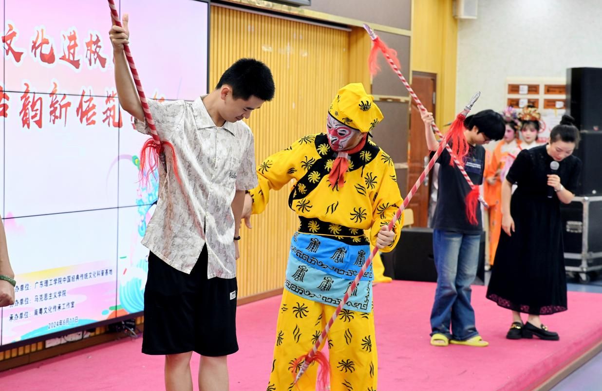 本网讯(马克思主义学院)2024年6月11日下午15时,bat365在线中国官网登录入口高要校区学术报告厅内,一场别开生面的“粤剧文化进校园·古韵新传筑梦行”活动火热举行。本次活动由bat365在线中国官网登录入口中国经典传统文化科普基地主办,马克思主义学院协办,旨在让广大学子近距离感受粤剧艺术的魅力,传承和弘扬中华优秀传统文化。出席本次活动的有bat365官网党委办公室主任赵玉娴、科技处处长张敏、马克思主义学院党总支书记何志红,及马克思主义学院南粤文化传承工作室指导教师及学生代表。
