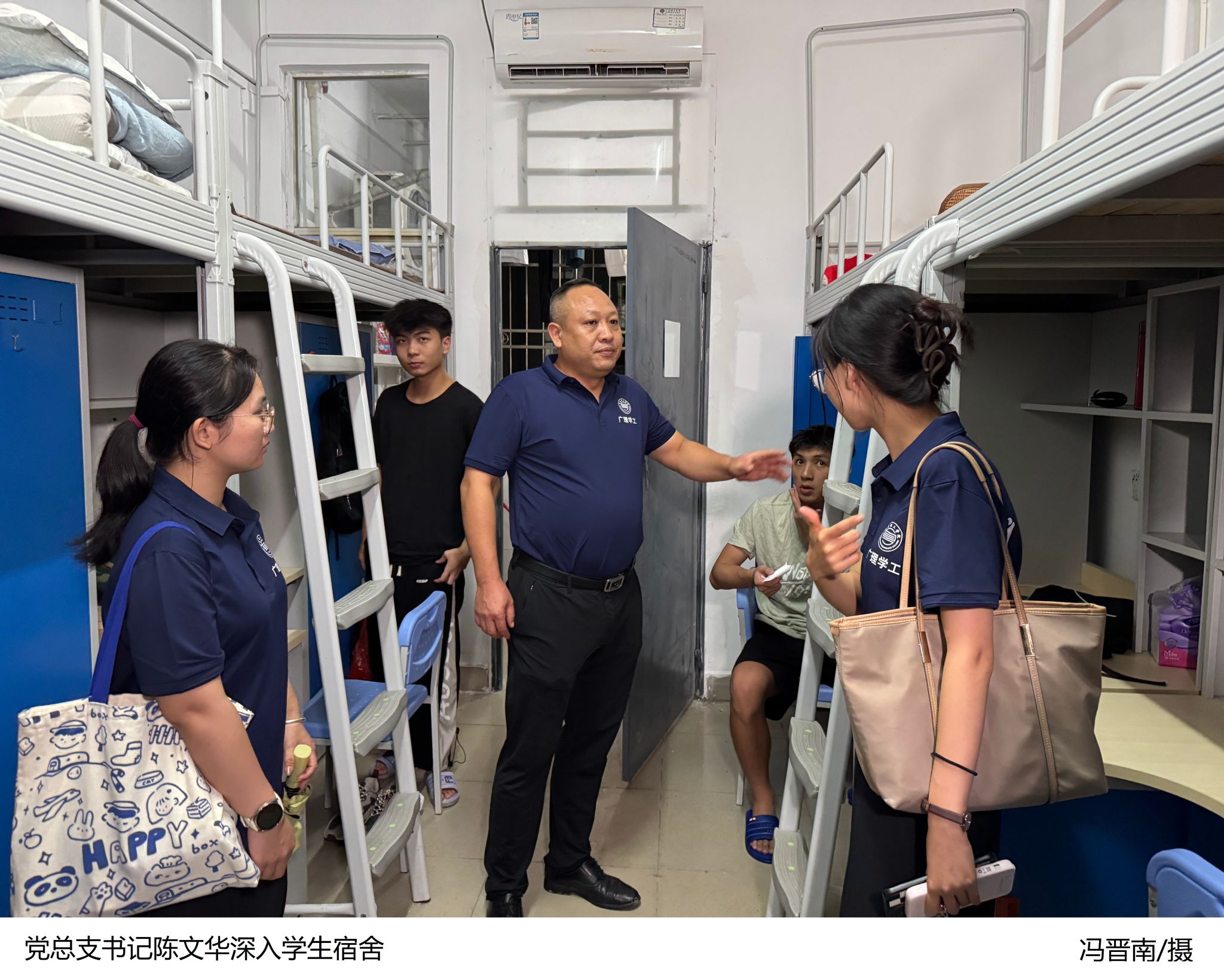 本网讯(电气与电子工程学院融媒体中心 舒佳宇)2024年9月7日,秋风送爽,电气与电子工程学院迎来了一批朝气蓬勃的2024级本科新生。在这个充满希望的季节里,学院党总支书记陈文华携同新生辅导员黎锦清等一行,带着满满的关怀与期待,深入新生宿舍,开展了一场温馨而意义深远的走访慰问活动。