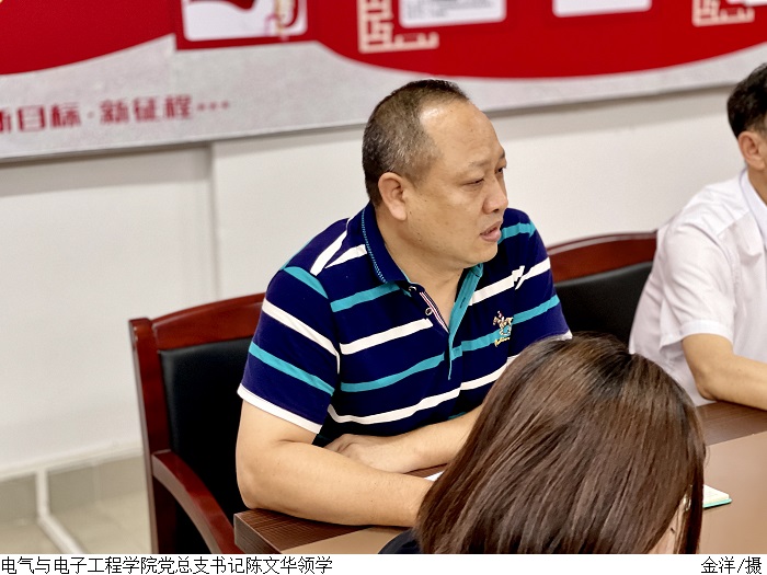 电气与电子工程学院党总支书记陈文华要求,全院上下要把学习贯彻落实习近平总书记重要指示精神与推进学校高质量内涵发展结合起来,做好各项就业服务工作。全体教职工要坚持党建引领,落实立德树人为根本任务,创新学习教育形式,对标省党代会精神结合学院本科教学评估,找准学院工作着力点,以新思路开创新局面,推动学院事业新发展。会上,辅导员雷坤、黄偲钰分别谈学习心得。