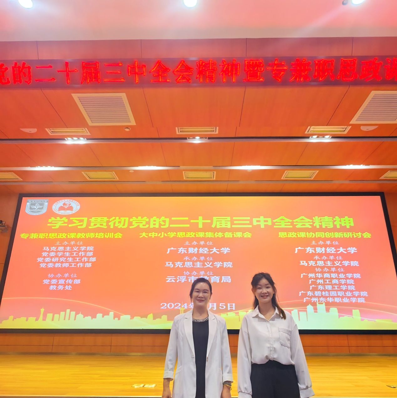 本网讯(马克思主义学院)9月5日,“学习贯彻党的二十届三中全会精神暨高校思政课建设协同创新研讨会”在广东财经大学举办,我院何志红教授、李建丽老师应邀参加。