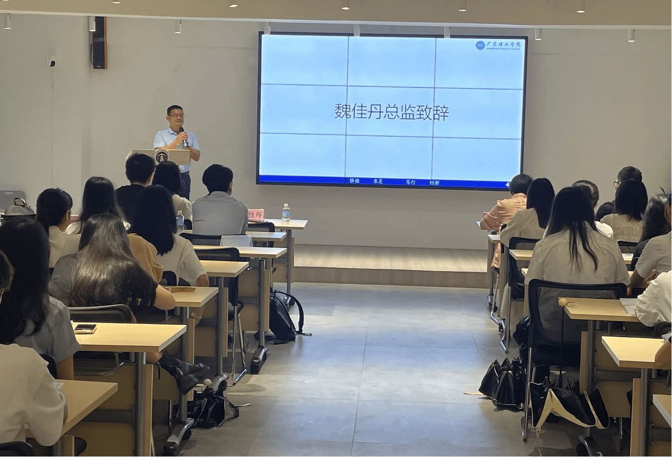 双选会上,盛洁和魏佳丹分别致辞。盛洁表示,学院不断优化专业设置,强化实践教学,加强校企合作,为同学们提供更加优质的实习资源,期望同学们能够在未来的工作岗位上,以扎实的专业知识、良好的综合素质和不懈的奋斗精神,书写属于自己的精彩篇章。魏佳丹指出,财务数字化岗位既充满挑战与艰辛,又有着光明的发展前景,希望同学们意志坚强,不因一时的困难停止学习的脚步,不因一时的挫折失去努力的信心,坚持下去必有丰厚的回报。