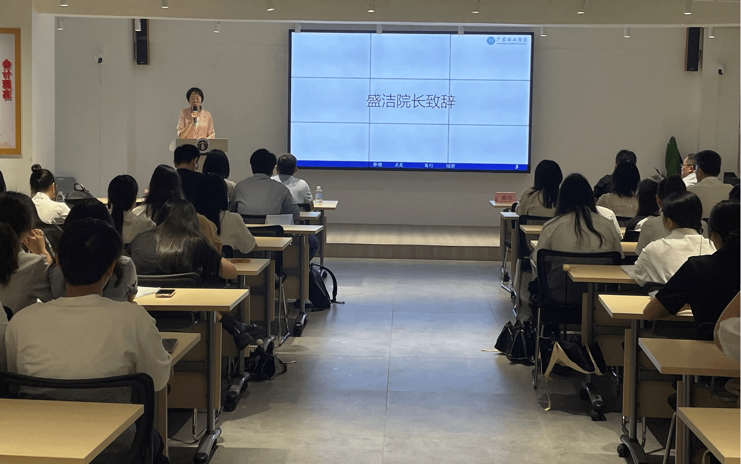 本网讯(会计学院)金秋时节,会计学院携手金蝶集团举行金蝶实习班结业典礼暨实习双选会。会计学院院长盛洁,党总支副书记徐永明,实验中心李向南主任,金蝶精一信息科技服务有限公司华南区魏佳丹总监、生态发展部李袁源总监、校企合作部何锦漫经理、上海管易云计算软件有限公司、广州鹏远信息科技有限公司、佛山市行云管理软件有限公司、长沙惠邦网络科技有限公司的企业领导和嘉宾莅临活动现场。另外八家企业的嘉宾通过线上会议的形式参加了本次活动。
