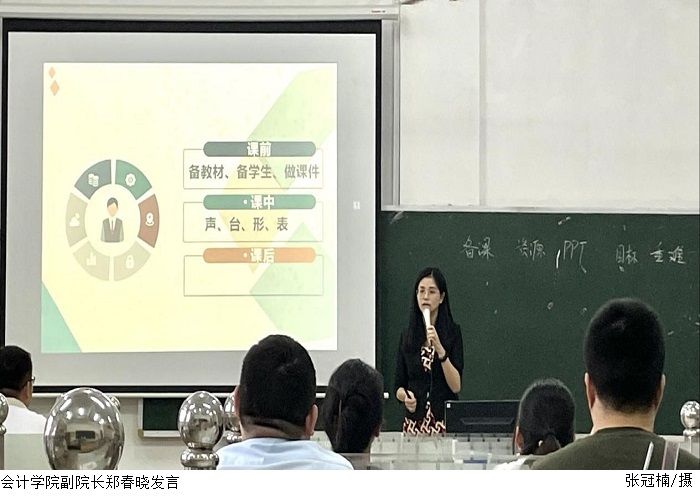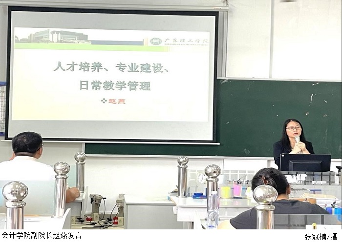赵燕介绍了会计学院的人才培养目标、方案和细则,以及专业建设和日常教学管理工作。她强调新教师应明确所授课程与人才培养目标的关系,积极借鉴先进教学经验,适时调整教学方法,认真履行各项工作职责。