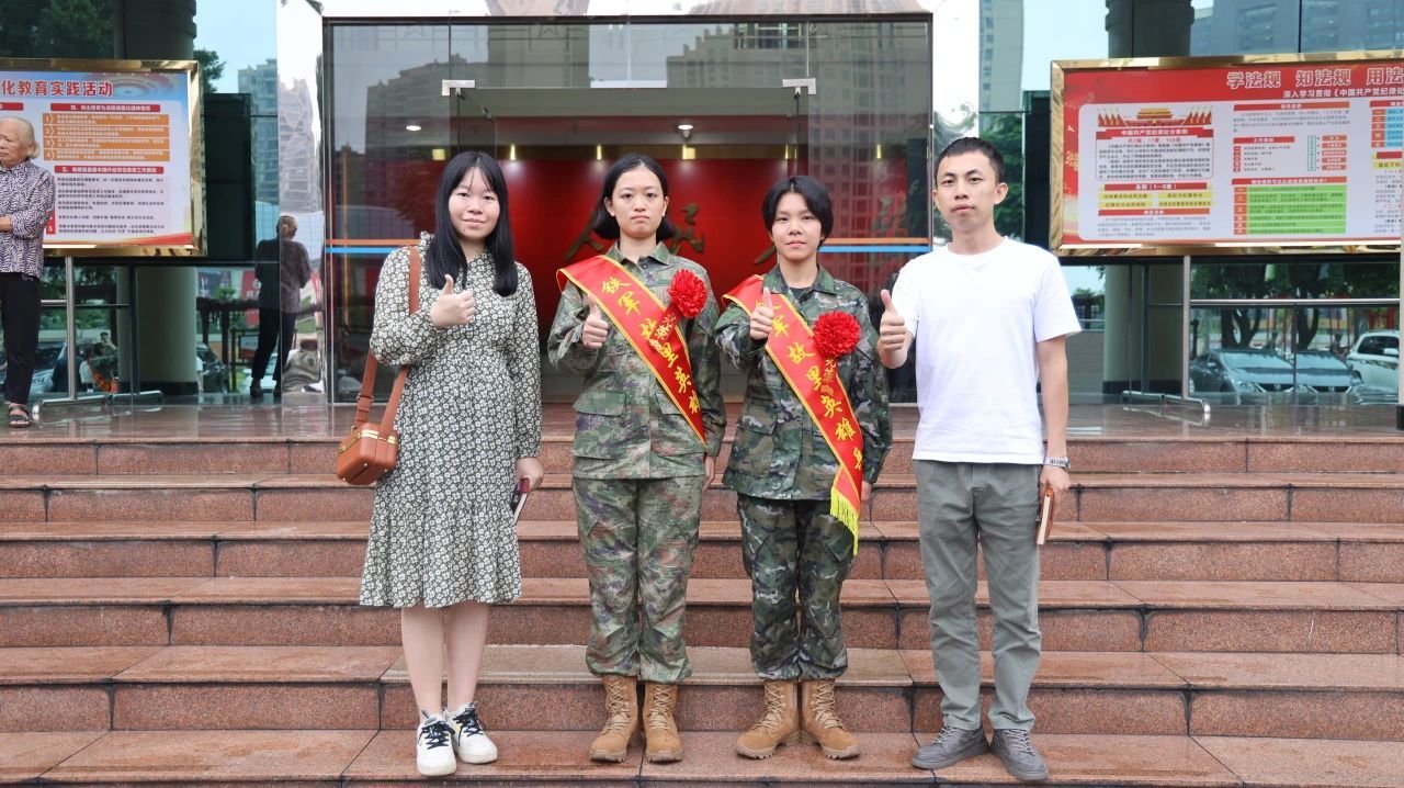 本网讯(外国语学院融媒体中心)2024年9月24日下午,肇庆市举行2024年下半年女兵入伍欢送仪式, bat365官网有2名女兵成功应征,均为外国语学院学生。女兵们身着迷彩服,胸戴大红花,等待踏上军旅新征程,开启保家卫国、不负青春的梦想之旅。外国语学院2021级本科翻译专业学生王婕和2022级本科商务英语专业学生陈铃蓉积极报名应征,取得体检、政考“双合格”,如愿踏上军旅新征程。学校征兵工作站唐敏智、我院团委书记郑苑钰参加欢送仪式。