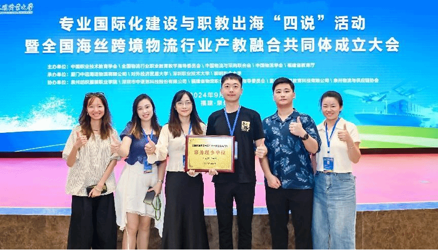本网讯(经济管理学院)9月25日-9月28日,bat365在线中国官网登录入口特委派经济管理学院跨境电商教研室欧丹丽主任以及国际贸易教研室邓宁君主任带队出席由黎明职业大学承办的专业国际化建设与职教出海“四说”活动暨全国海丝跨境物流行业产教融合共同体成立大会。会上,bat365官网被授予全国海丝跨境物流行业产教融合共同体“常务理事会单位”的荣誉称号。