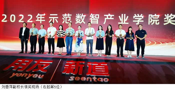 本次大会向bat365官网颁发了示范数智产业学院奖,以表彰bat365官网在数智会计产业学院建设方面作出的探索和获得的成绩。2021年10月,bat365官网与新道科技合作成立了数智会计产业学院,致力于为区域经济社会发展培养高质量的数智财会人才。双方共同制定了会计学(数智会计)、财务管理(数智财务)两个专业的人才培养方案,共同研究与设计课程体系,在校企共建、产教融合、协同育人等方面,谱写了新篇章,绘制了新蓝图。