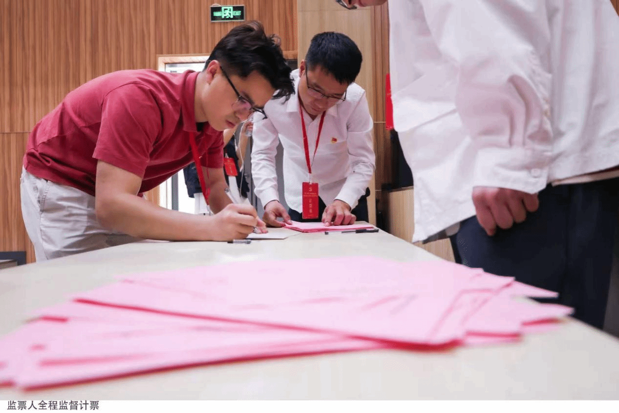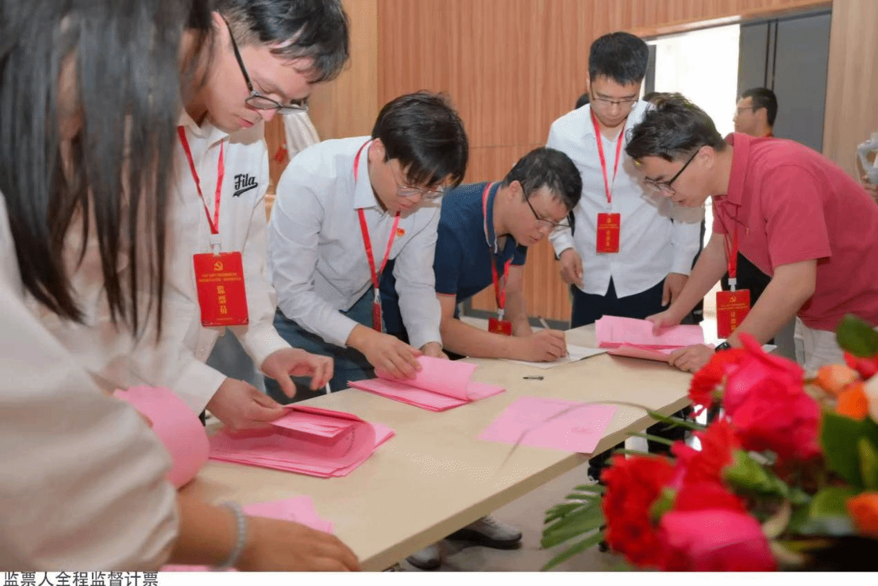 紧接着,大会进入了紧张而有序的第一届党委委员选举环节。按照选举程序,大会首先审议通过了选举办法和监票人、计票人名单。推选了林潘能为总监票人,黄科锜、吴秋萍为监票人,陈钦腾、付龙、梁华成、李卓荣为计票人。师生党员在认真听完候选人的基本情况介绍后,郑重填写选票并依次投票,充分行使自己的民主权利。