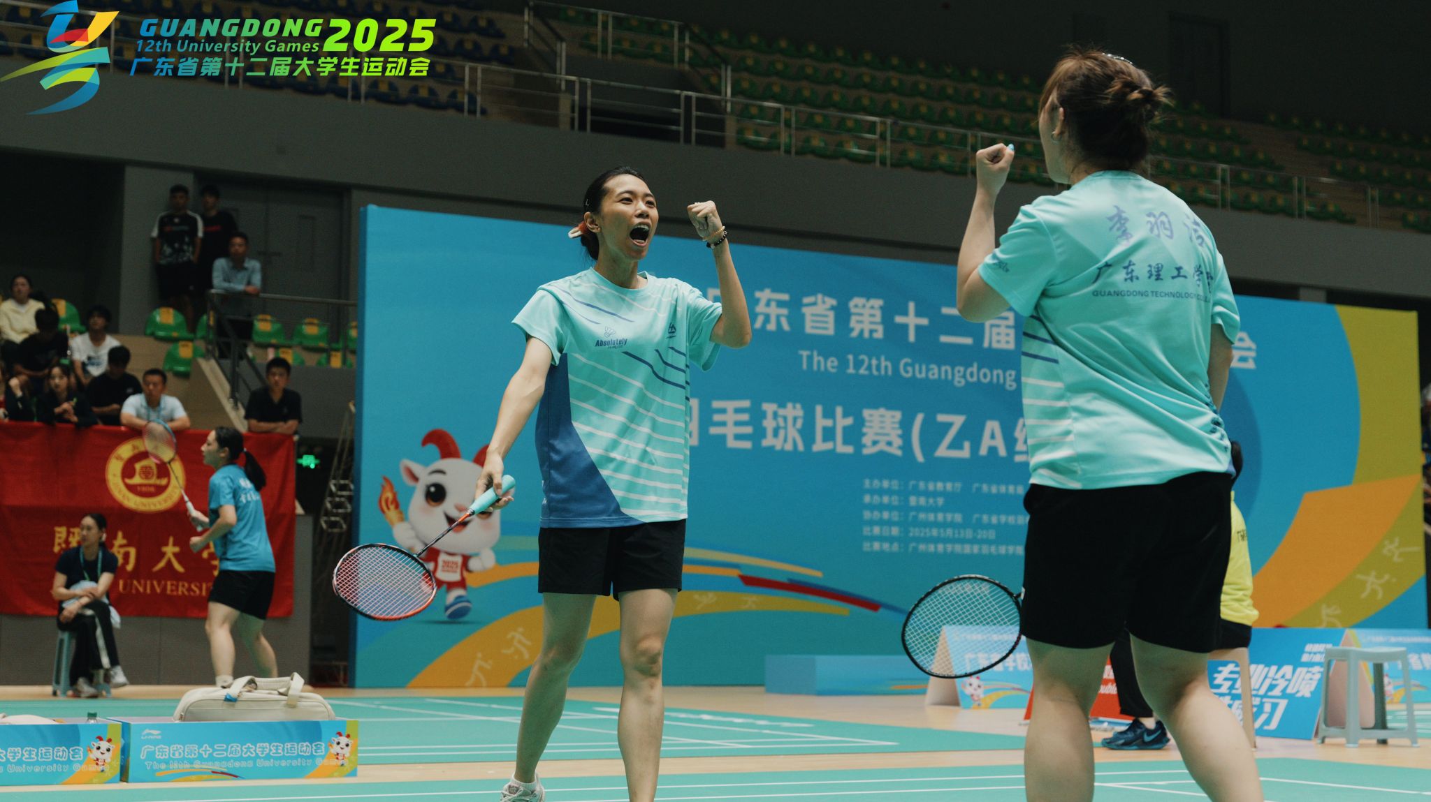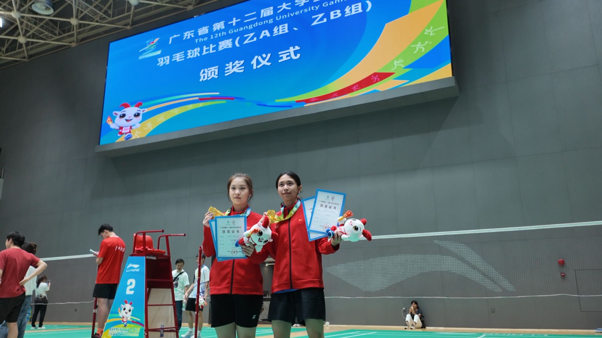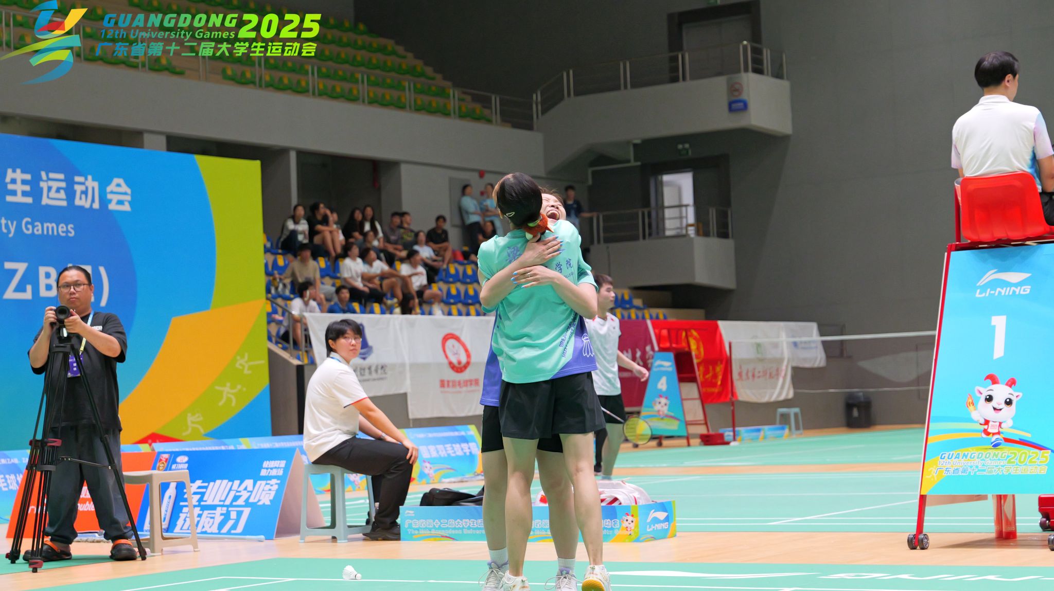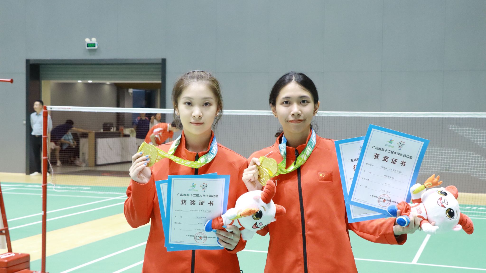 女子双打冠军——3号种子组合李羽洁/梁碧莲发挥出色,决赛中与广州体育学院的1号种子组合鏖战至加分阶段,最终以16:14、20:18的比分锁定胜局,再添一金!