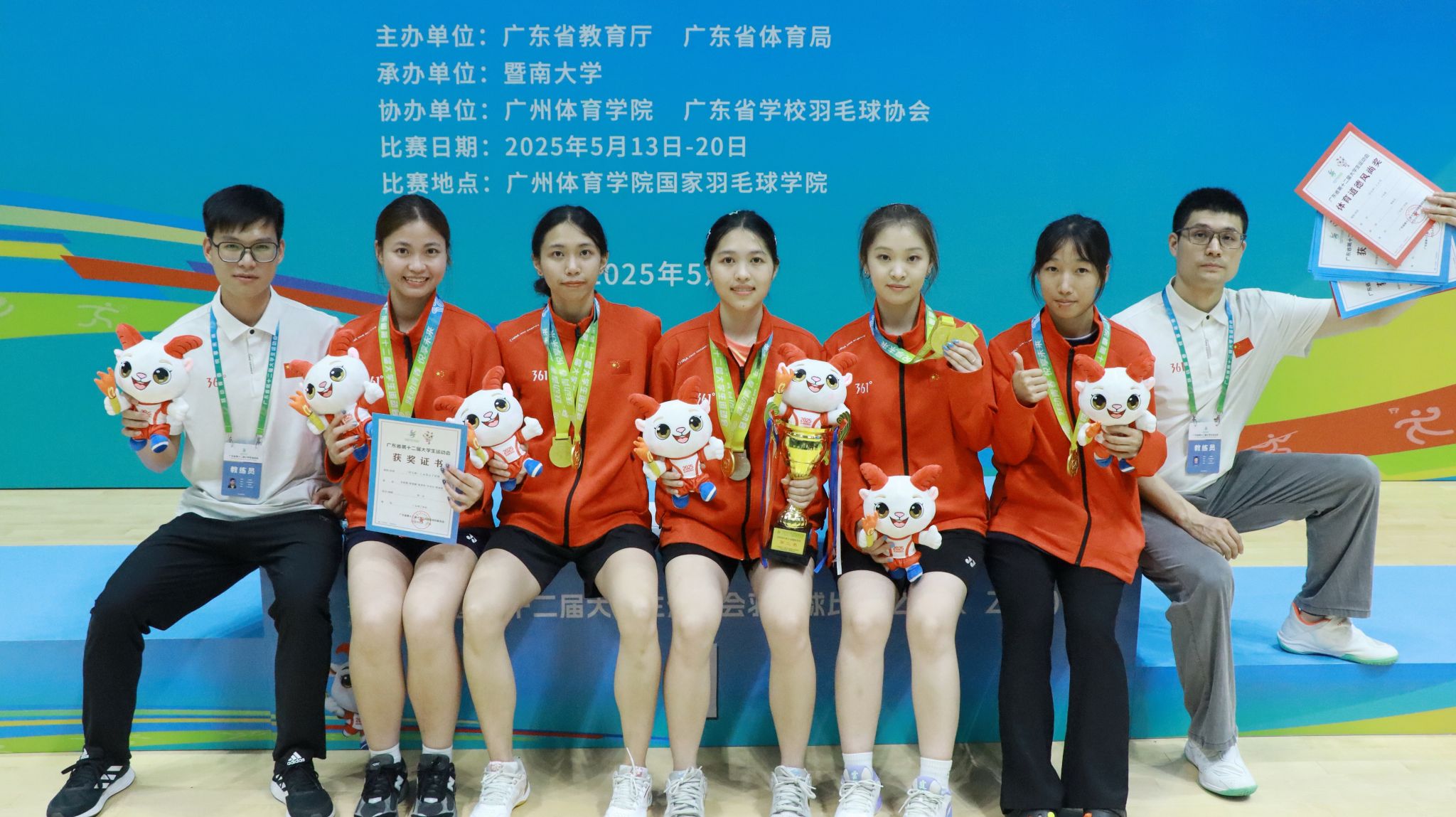 女子团体冠军——团队一路高歌猛进,小组赛连胜广州大学、广州体育职业技术学院和东莞理工学院,以全胜战绩晋级;半决赛2:0力克华南师范大学;决赛对阵东道主广州体育学院,在双打失利的不利局面下,二单选手梁碧莲顶住压力,在先丢一局的情况下实现逆转,最终以2:1战胜对手,勇夺金牌!