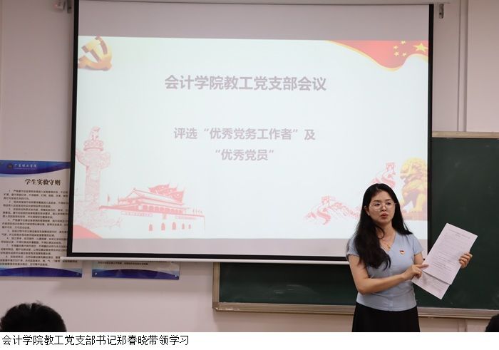 本网讯(会计学院 李小华、刘涛)2025年6月10日,会计学院教工党支部在7112会议室召开党员大会。会议由教工党支部书记郑春晓主持,学院党委书记黎伯毅、副书记徐永明及全体教职工党员参会。