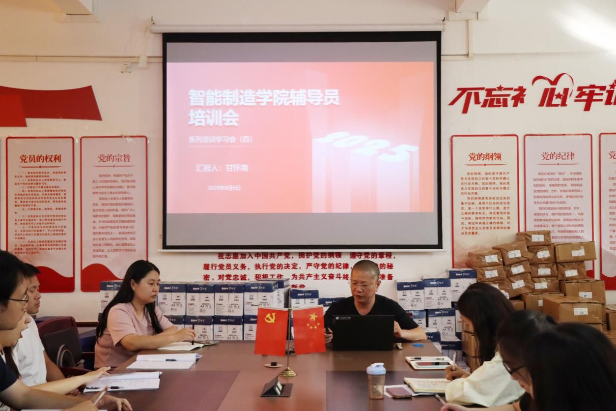 本网讯(智能制造学院) 2025年9月5日下午3时,智能制造学院全体辅导员工作会议在学院9304会议室隆重召开。学院党委书记甘怀南、党委副书记魏淼及全体专职辅导员齐聚一堂,共同总结过去、剖析现状、规划未来,为新学期学生工作的顺利开展谋篇布局。本次会议旨在进一步加强辅导员队伍建设,提升思政工作与管理服务水平。
