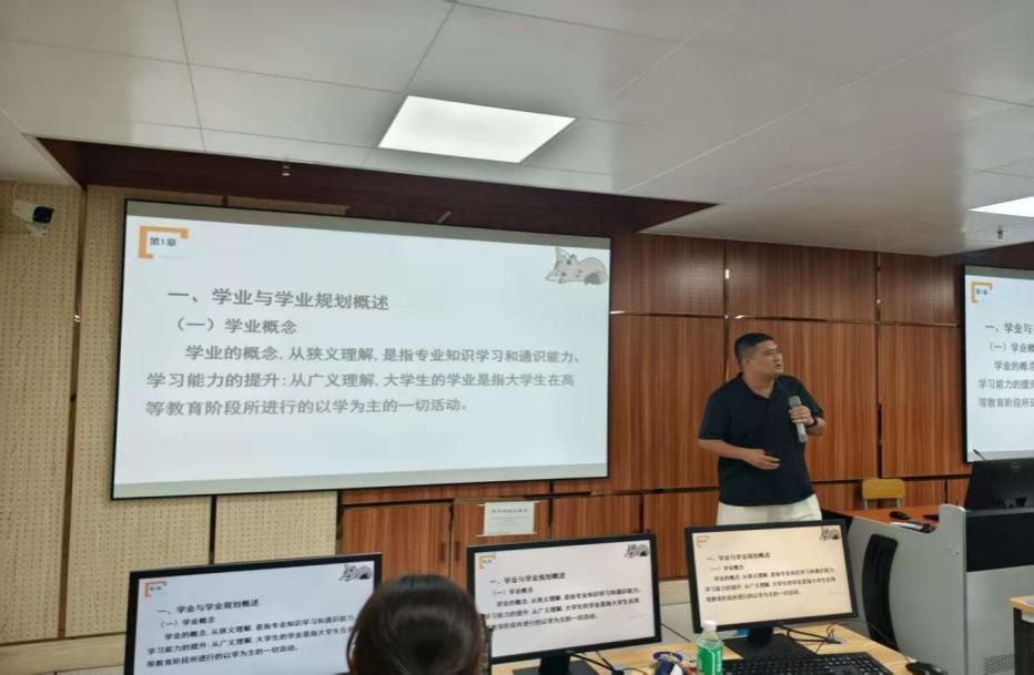 本网讯(创新创业学院)2025年9月12日下午,为深化创新创业教育改革、强化师德师风建设,创新创业学院在综合楼6楼604智慧教室召开《大学生学业发展与职业生涯规划》课程教学及建设研讨会。会议聚焦课程优化与教师发展,学院副院长梁慧仪副教授、企业综合实践教育中心主任周红梅教授及100余名任课教师参会,共同探索育人新路径。会议由创新创业学院副院长梁慧仪主持。