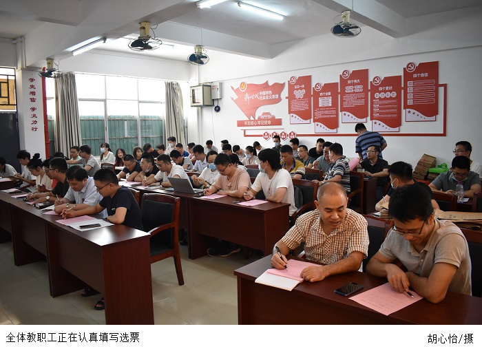 彭清林传达学校有关“双代会”文件精神,按照规定程序,依次通过监票人、计票人和代表候选人名单。随后,大会采用无记名投票方式,现场投票选举出10名代表参加学校第四届“双代会”。
