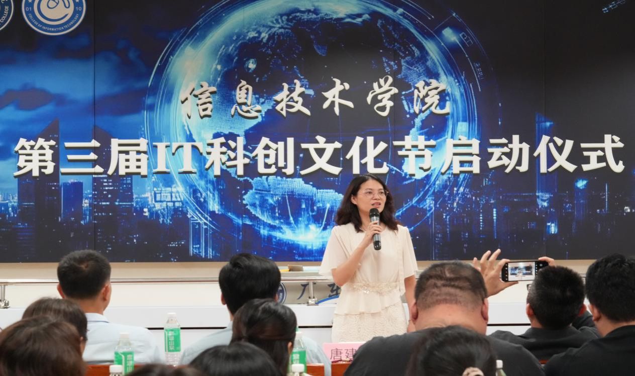 随后,信息技术学院院长林显宁对此次IT科创文化节启动仪式进行发言。他强调:科技创新需要敢想敢试的勇气,更需要求真务实的思考。希望大家在科创文化节中主动探索、积极创新,将课堂所学转化为实践成果,创造出属于自己的科技亮点。