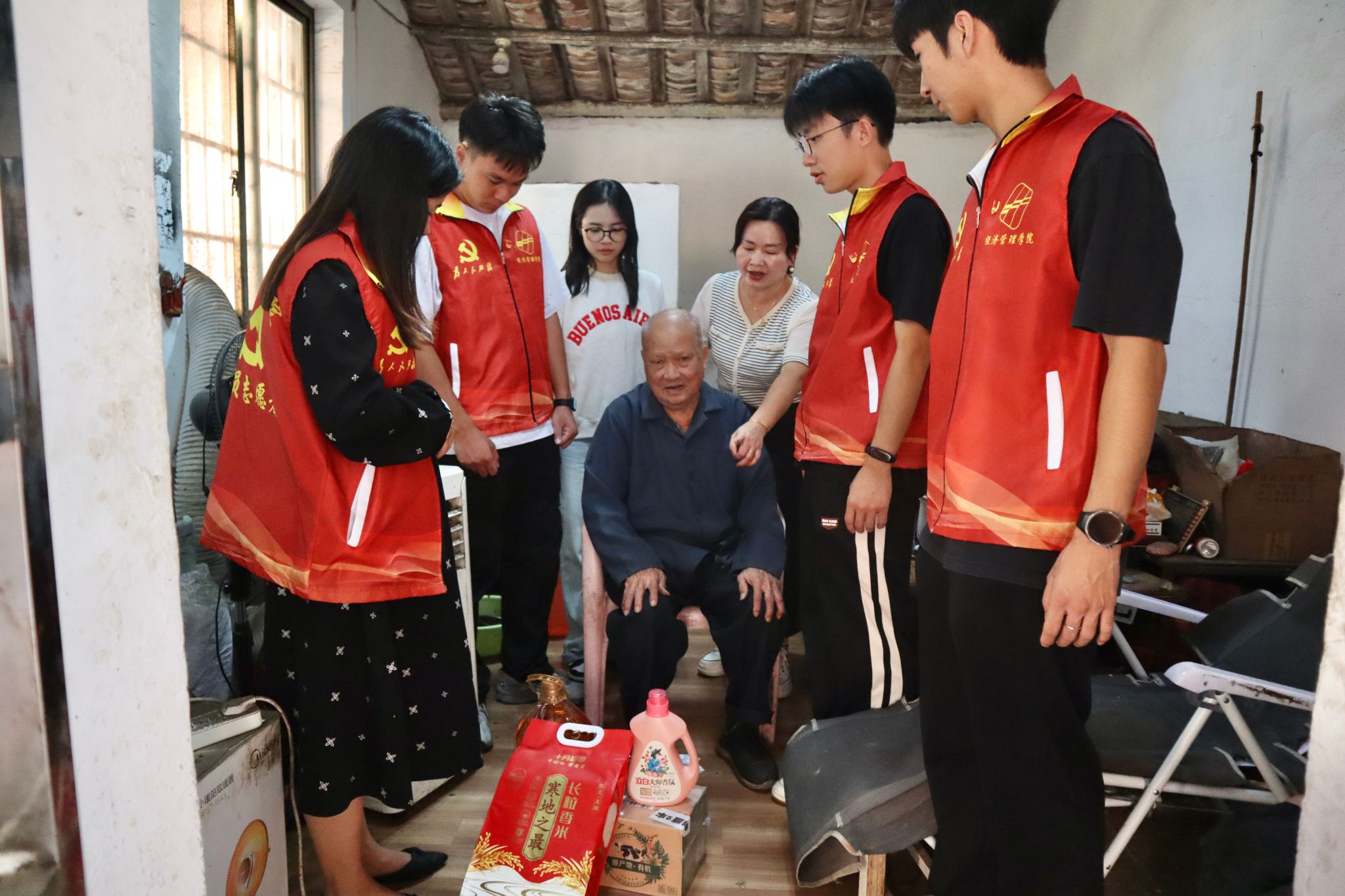 本网讯(经济管理学院 蒋天麟 阮豪胜为深入学习贯彻党的二十届四中全会精神,引导广大党员深刻领会全会核心要义与实践要求,本次党日主题活动旨在弘扬中华民族传统美德,发挥党员的先锋模范作用,2025年10月27日,在经济管理学院党委副书记吕媛、魏甫龙、教工第一党支部副书记吴迪、学生第一党支部书记侯小孩、学生第二党支部书记刘任、学生第三党支部书记赵静静的带领下,学生党员代表共同前往鼎湖区苏村社区开展“党系社区情,青春献服务”情暖重阳慰问活动。