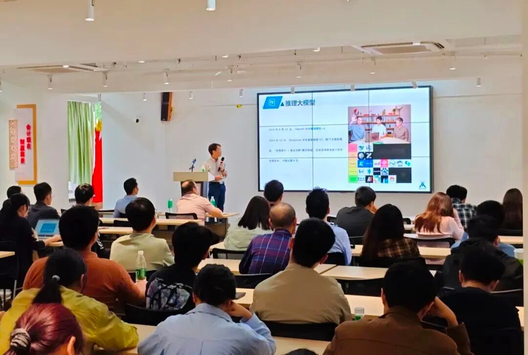 讲座开幕,由电气与电子工程学院副院长罗泽鹏主持。他首先向现场参会教师隆重介绍了本场特邀主讲人——深圳市讯方技术股份有限公司高级工程师、桂林电子科技大学客座教授朱兴林。朱兴林工程师深耕人工智能领域多年,曾深度服务华润集团、中国移动等知名央企,在AI技术落地与定制化培训领域积累了丰富实践经验。罗副院长在讲话中表示,此次专家分享聚焦AI前沿应用与实操方法,将为在场教师带来极具价值的参考与启发,助力大家拓宽技术视野、提升应用能力。