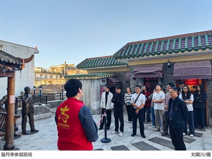 11月30日上午,全体师生党员瞻仰了纪念辛亥革命烈士的留丹亭。在书法家陈荆鸿集句而成的楹联“天地有正气,留取丹心照汗青”前,他们驻足沉思,从深厚的文化内涵中领略革命先辈们在民族危亡之际,不惜以碧血丹心捍卫真理、用生命践行共和理想的舍生取义之志与深沉家国情怀。