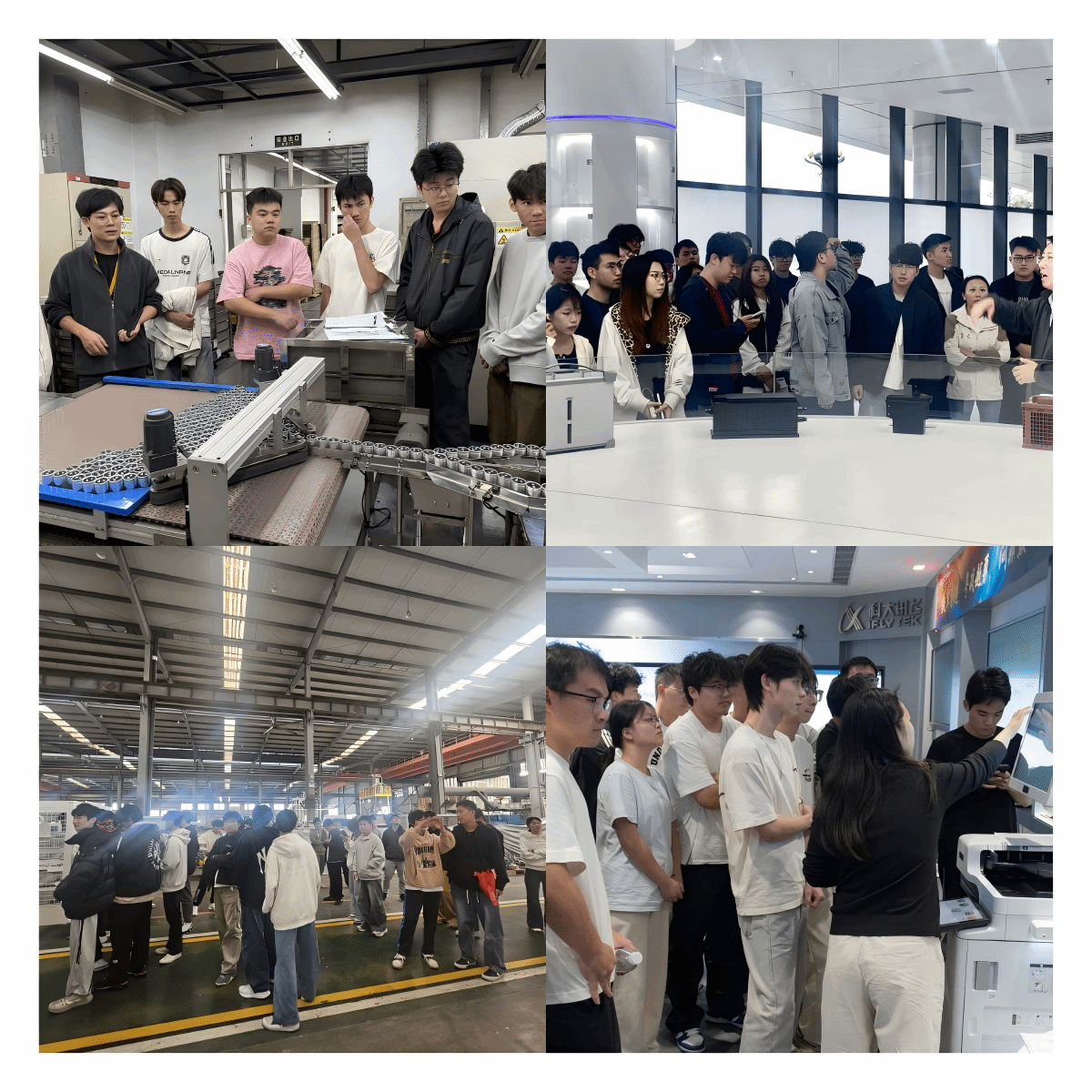 见习过程中,在赵宁书记、李松名等老师的统筹协调与全程陪伴下,师生们有序开展沉浸式学习,全方位增长就业认识。在肇庆小鹏汽车智能网联科技产业园,师生们实地探访冲压、焊装、总装等五大车间,近距离观摩264台智能工业机器人协同作业,对工业4.0标准下的智能制造流程有了直观认知,深刻体会到新能源汽车行业对技术型人才的迫切需求;在科大讯飞华南有限公司与华为 ICT 学院相关合作企业,大家亲身体验智慧会议、云计算等前沿技术的实际应用,明晰了ICT领域的岗位设置与能力要求;在万裕三信电子、槿泓电子等企业,通过参观电子元件生产线、了解高端工业装备连接方案,学生们掌握了电子行业的核心业务范畴与发展前景,打破了对专业就业的狭隘认知。每到一处,带队老师都及时引导学生结合所学专业提问交流,将课堂理论与企业实际应用深度结合,让学生在实践中找准自身知识短板与能力差距。