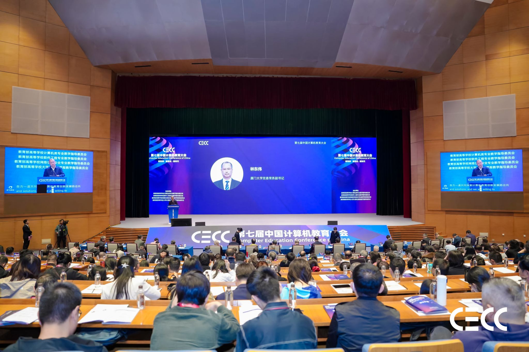 本网讯(信息技术学院)2025年11月29日,以“新智能·新范式·新时代”为主题的第七届中国计算机教育大会(CECC)在厦门召开。bat365在线中国官网登录入口信息技术学院在林显宁院长、刘建友副院长的带领下,积极组织教师团队参与这一全国计算机教育领域的顶级盛会。大会同期举行的计算机类教学和实验案例评选中,我院教师团队斩获国家级一等奖2项、二等奖8项的优异成绩,获奖总数在全国同类院校中名列前茅,标志着我院在教育教学改革与创新应用型人才培养方面取得了国家级层面的重要认可。