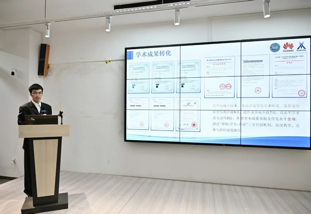 在揭牌仪式最后,华为ICT学院年级委副主任、学生发展中心指导老师刘子骞作总结发言。他指出,本次揭牌仪式标志着我院学生工作实现从“传播声音”向“赋能成长”的职能深化。刘子骞老师对学院过往在学科竞赛、学术创新等领域取得的丰硕成果予以充分肯定,并强调年级委员会的成立,将有力推动“校企双导、学生主体”协同机制落地见效。最后寄语全体成员,要坚持目标导向、强化资源整合、勇于创新突破,携手将学院建设成为粤港澳大湾区ICT人才培养的高地。