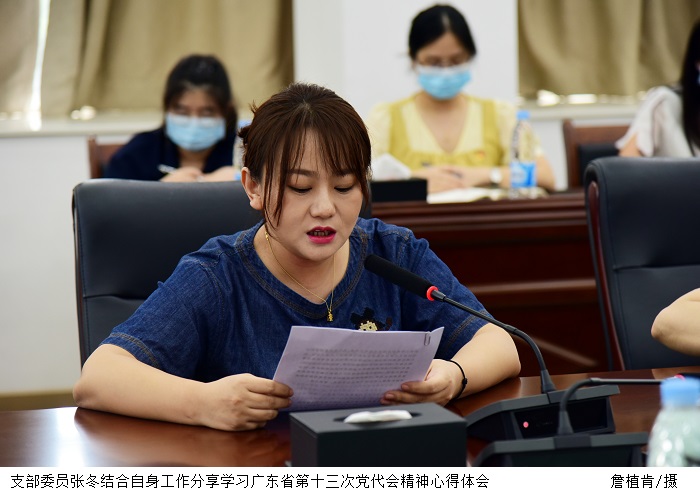 支部委员张冬结合自身工作,从落实“立德树人”、做好思政教育、促进学生全面发展等方面分享学习广东省第十三次党代会精神心得体会。
