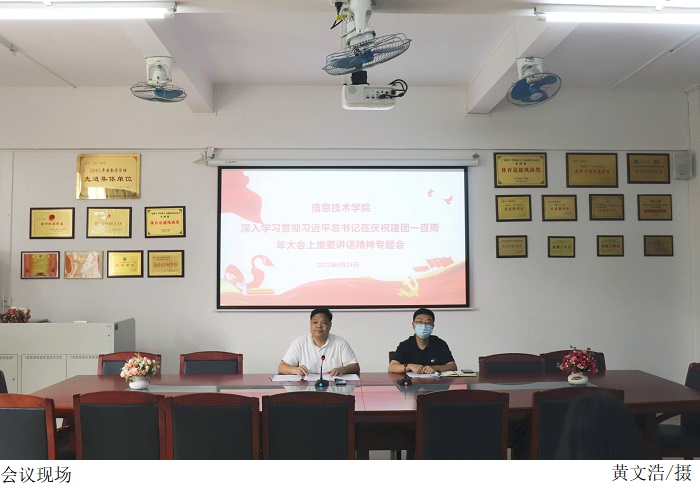 本网讯(信息技术学院 王诗琳)5月24日下午,信息技术学院党总支于振华楼203室召开学习贯彻习近平总书记在庆祝中国共产主义青年团成立100周年大会上的重要讲话精神专题会。党总支书记梁星全出席会议。