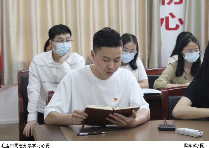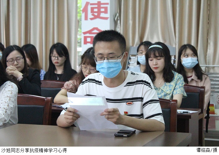 随后,党员教师毛孟中、沙旭同志分享学习心得。他们表示青年教师要不断提高自身修养,以模范行为影响和带动学生。