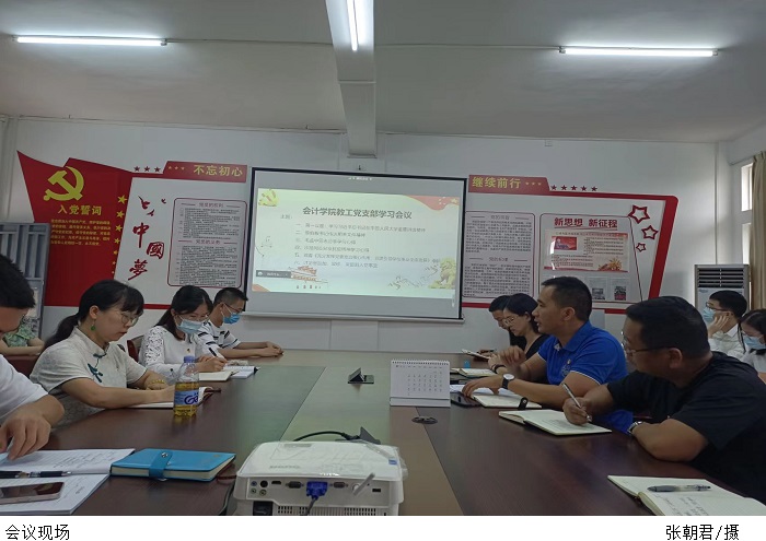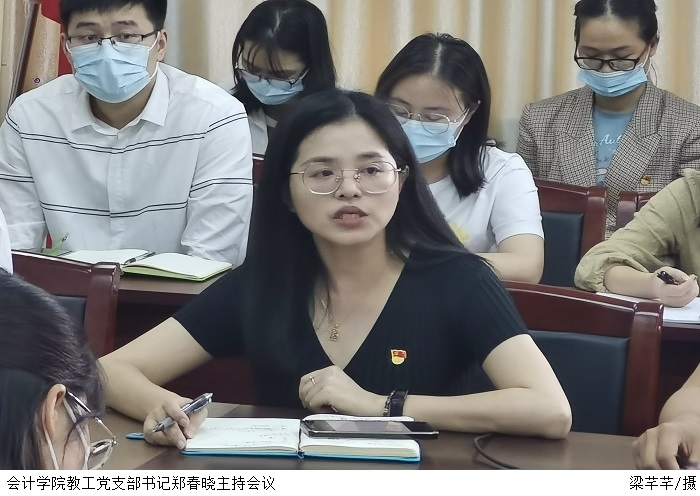 本网讯(会计学院新闻中心 詹思妍)5月10日下午,会计学院在高要校区7303召开教工党支部党员会议,会议在鼎湖校区6110同步直播。党总支书记黎伯毅、副书记徐永明及全体教师党员参会。会议由教工党支部书记郑春晓主持。