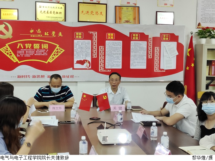 本网讯(电气与电子工程学院 叶运黎)为促进学生党建工作规范化、制度化,充分发挥学生党组织的积极性和创造性,5月17日,电气与电子工程学院在7203会议室召开学生党建工作中心成立大会。电气与电子工程学院院长关健、党总支书记陈文华、党总支副书记陈强、学生党支部书记叶运黎出席会议,学生党支部委员、辅导员、教务员、行政秘书、学生党支部全体学生干部共同参会。
