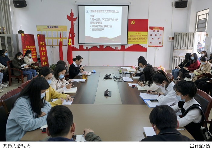 本网讯(外国语新闻中心 孔思怡)加强支部建设、提高支部凝聚力,4月19日下午,外国语学院教工党支部在37101党员活动室召开党员大会。会议由党总支书记吕丽红主持,全体教工党员参会会议三项议程分别为:共同学习习近平总书记重要讲话精神;预备党员吸收讨论;支委换届选举。