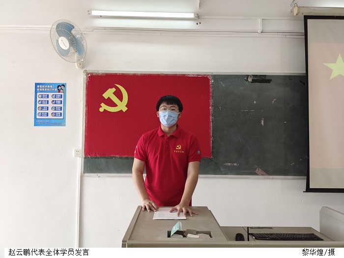 随后,2021级本科电气2班赵云鹏代表全体党校学员表态发言。