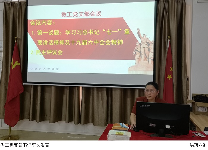集中学习结束后教工党支部召开了2021年度民主评议会。会上李文从党章规定的职责任务、党史学习教育的成果等方面出发开展自我批评,引导各党员展开自评、互评。