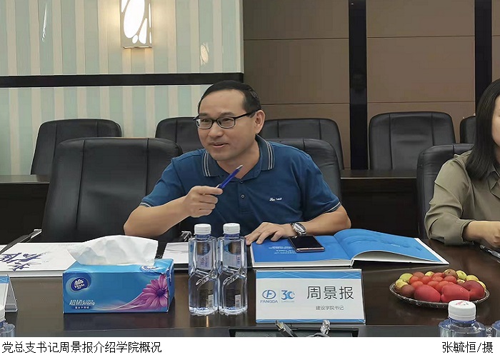 周景报向各公司和企业简要介绍建设学院概况,专业设置,人才交流和校企合作等基本情况,并对实习生的岗位设置、实习与就业衔接、未来晋升空间等多方面进行详细了解。