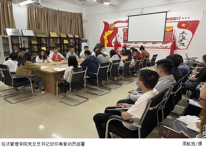 本网讯(经济管理学院)为全面贯彻党的教育方针,响应学校“校风学风建设月”活动号召。10月18日,经济管理学院于党员活动办公室召开动员大会,学院党总支书记甘怀南、党总支副书记吴楚升、全体辅导员参会。