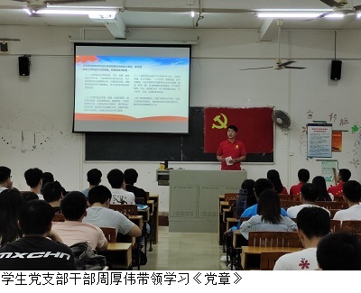 学生党支部书记叶运黎强调,党章是中国共产党集体智慧的结晶,是党的历史缩影,是我们党奋斗历史的高度凝炼,党章是党内法规,每一名建党对象都要深入学习。他带领与会人员认真学习了“党的纪律”有关内容,并号召全体建党对象要认真学习党章,坚定理想信念,时刻以一名党员的标准要求自己,争取早日加入党组织。随后,学生党支部干事带领与会人员学习了《中国共产党章程》有关内容。