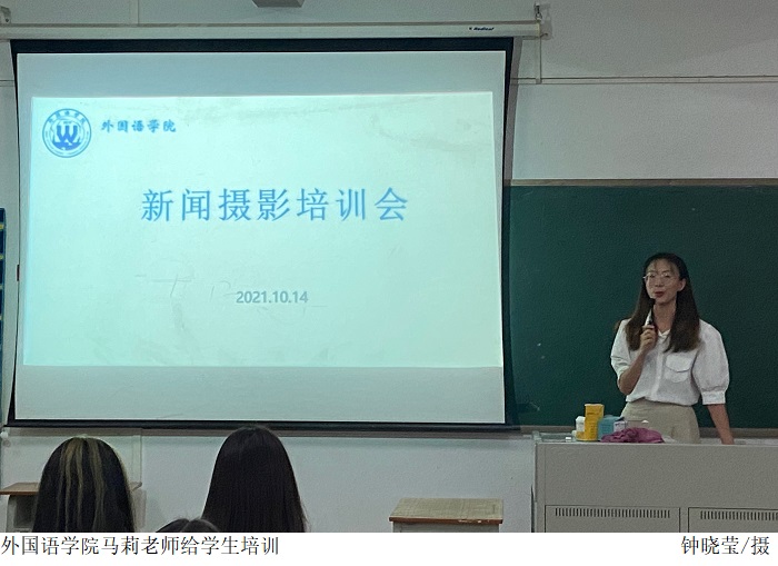 本网讯(外国语学院 苏梓蕾 钟玉君)为更好地推进外国语学院的新闻报道工作,提高新闻文稿写作及照片拍摄水平,10月17日晚,外国语学院在39栋302召开新闻供稿规范培训会。本次培训会由外国语学院新闻中心指导老师钟玉君主持,辅导员马莉老师主讲,各学生组织宣传工作小组全体干部、干事参会。