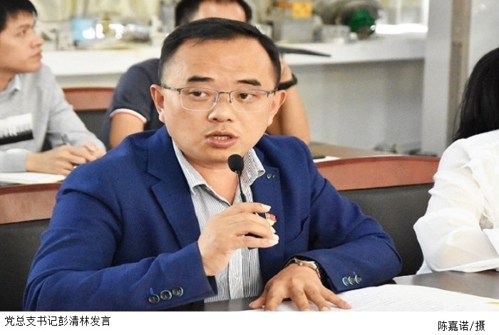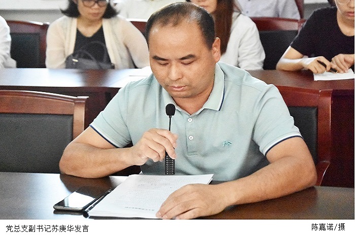 党总支苏庚华副书记结合黄大年的优秀事迹,鼓励老师认真学习黄大年精神,努力为国家教育事业贡献自己的力量。