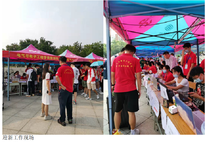 本网讯(电气与电子工程学院 叶运黎)为确保迎新工作的顺利完成,2021级迎新动员大会于9月10日在5103教室正式召开。9月11至12日,在学工部部长钟敏杰、学生党支部书记叶运黎、团委学生会书记叶家宜的具体组织下,学生助班团、学生党支部、团委学生会、创新创业导航站多个学生组织形成联动机制,自发组织志愿者参与到迎新第一线。