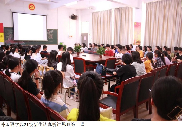 本网讯(外国语学院新闻中心)为提高新生思想觉悟,加强思想建设,9月15日下午,外国语学院潘利锋院长、党总支吕丽红书记分别为新生讲授了思政第一课。