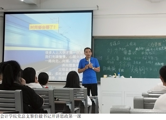 本网讯(会计学院)为引导2021级新生树立正确的思想观念,提升自身素质,全面发展个人能力,成为适应新时代的优秀人才,9月15日下午,会计学院组织21级新生班级代表参加鼎湖校区7403教室的思政第一课,课程由我院党总支黎伯毅书记主讲。