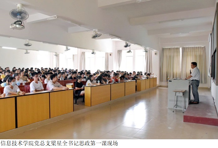 本网讯(信息技术学院 林淑卿)为深入贯彻习近平新时代中国特色社会主义思想及习近平总书记“七一”重要讲话精神,引导学生树立远大理想,信息技术学院党总支梁星全书记于9月16日在bat365官网振华楼501室为2021级新生讲授思政第一课。