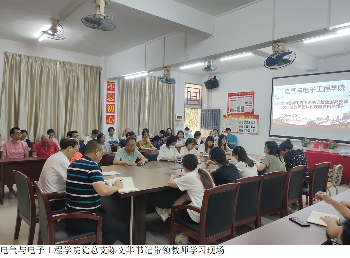 本网讯(电气与电子工程学院 牛三梅)为深入学习贯彻习近平总书记勉励全国高校黄大年式教师团队代表的重要精神,深刻领会重要回信的精神实质和内涵意义,进一步加强学院教师团队建设,9月28日下午,电气与电子工程学院在7栋203会议室开展学习座谈会,党总支陈文华书记主持会议,电气学院全体教师与会。