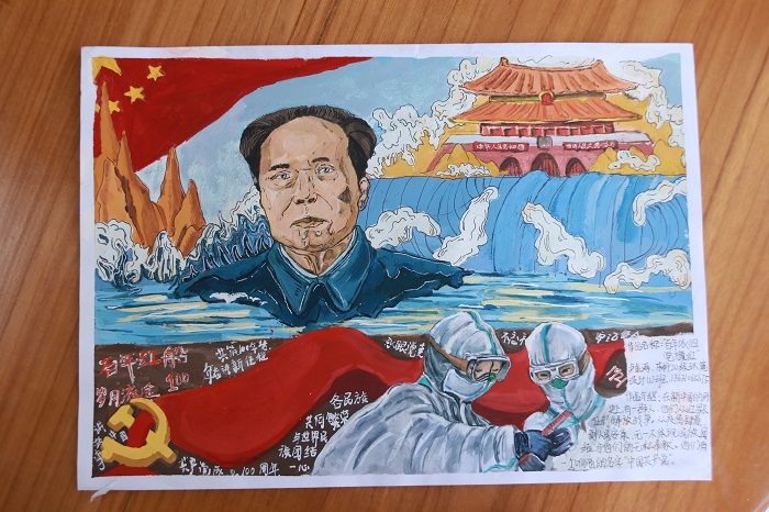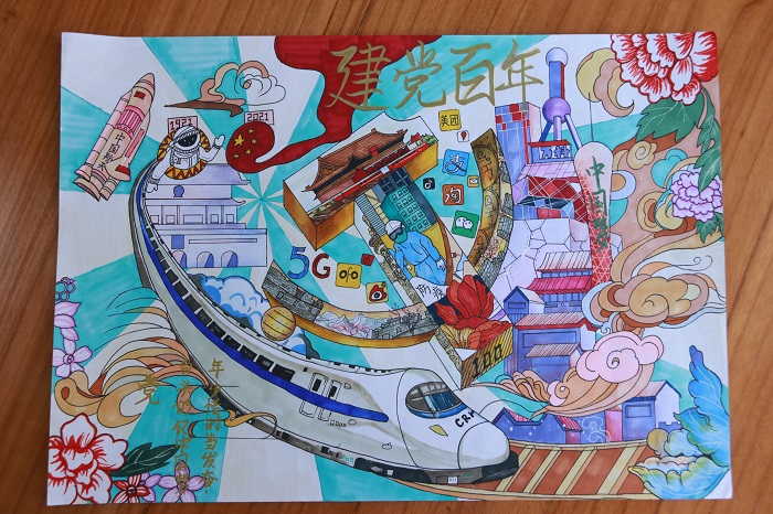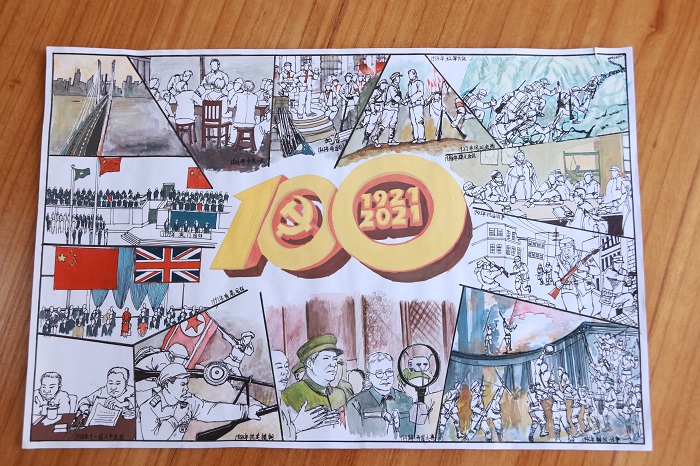 活动得到同学们的踊跃参与。本次参赛作品分为绘画组和视频组。同学们用颜料在纸上绘制出党的百年进程,用镜头拍摄出党的奋斗历史,生动再现了党的光辉岁月,每一份作品从不同角度凸显了同学们对党和国家的无限热爱和赞颂之情。